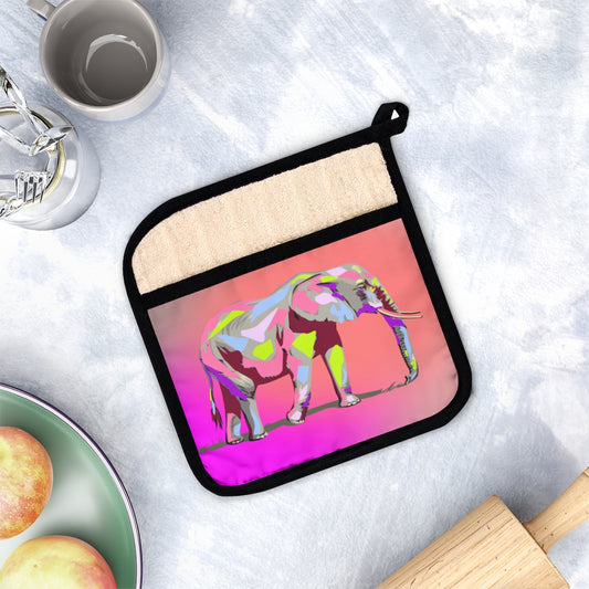 Irresistible Elephant Pot Holder with Pocket - Multicolored Elephant on Pot Holder, Purple and Pink Pot Holder