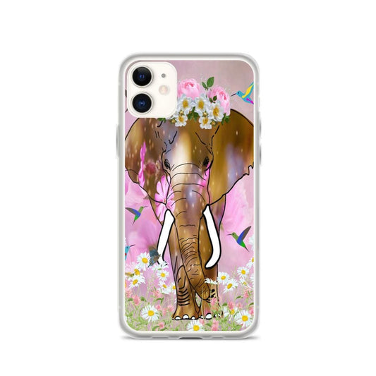 iPhone Case with African Elephant Illustration - Field of Dreams Elephant with Flower Crown