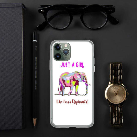 iPhone Elephant Case - Just a Girl who Loves Elephants with Writing, Multicolored Elephant iPhone Case