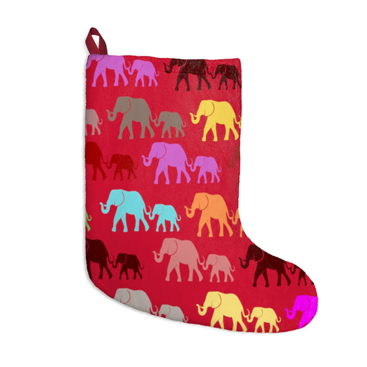 Red Elephant Christmas Stocking - Elephant Family Walk with Colorful Elephants