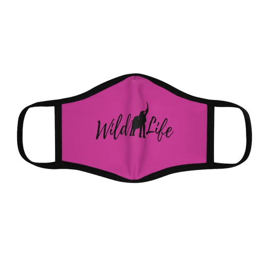 Wildlife Elephant Fitted Polyester Face Mask - Black Face Covering with Pink Elephant
