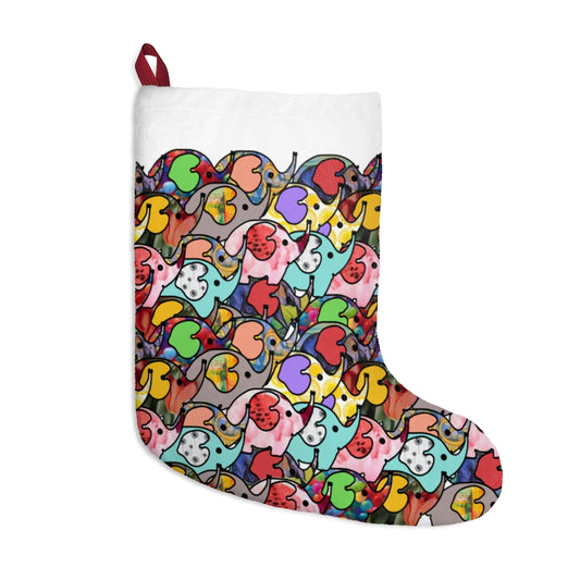 Elephant Gathering Christmas Stockings with Multicolored Elephants - Colorful Elephant Christmas Stocking