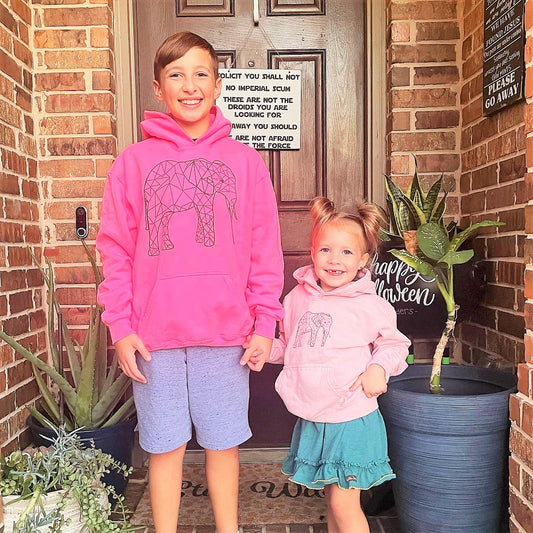 Youth Geometric Elephant Hoodie - Neon Boy Hoodie, Neon Girl Hoodie