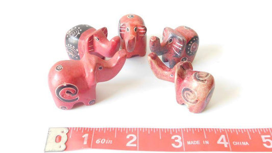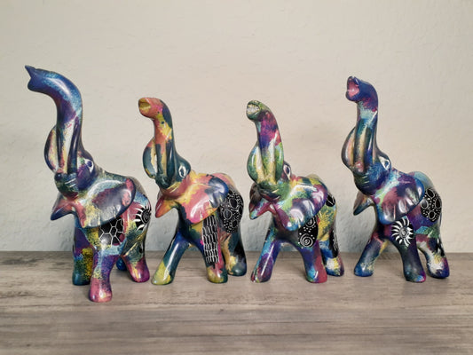 Multicolored Soapstone Elephant Sculptures - Medium-Sized Statues