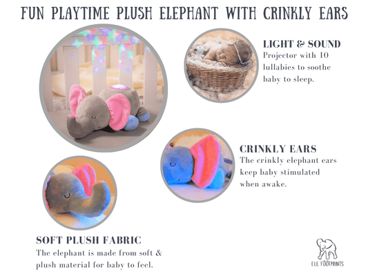 Soothing Stuffed Elephant Star Projector Plays 10 Lullabies - Stuffed Lullaby Elephant Toy, Elephant and Light Projector, Crib Lullaby Soother
