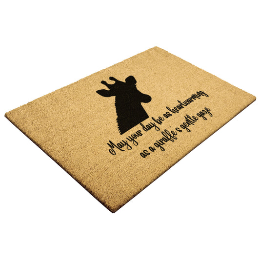 Welcome Home with our Whimsy Giraffe Coir Mat, functional front door mat, cute outdoor & patio gift mat, durable animal flower mat, tough