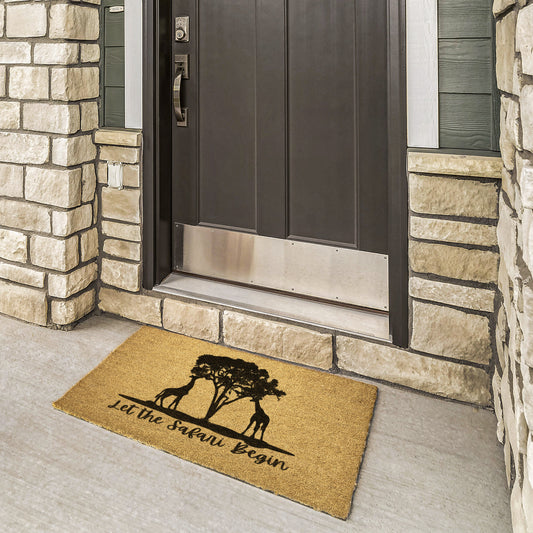 Let the Safari Begin Giraffes in Africa under Acacia Tree Welcome Home Coir Mat, Functional Front Door Mat, Animal Outdoor & Patio Gift Mat