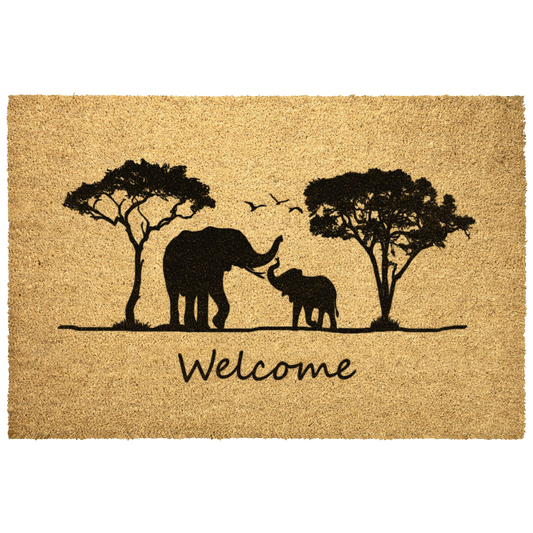 Safari Elephant Welcome Mat – Mama & Baby Elephant Serengeti Doormat