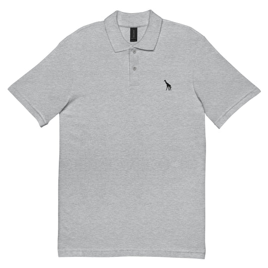 Giraffe Silhouette Polo – Black Embroidery on White or Grey Shirts | Unisex pique polo shirt