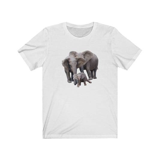 Unisex Jersey Short Sleeve Elephant Tee - Elephant Family on T Shirt along with Baby Elephant on Shirt