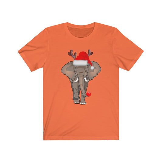 Women's Elephant Shirt, Men's Elephant Shirt, Unisex Short Sleeve Elephant Tee, Christmas Elephant Shirt with Red Santa Hat