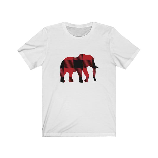 Men's Elephant Shirt with Buffalo Print, Women's Elephant Shirt with Buffalo Print - Unisex Jersey Short Sleeve Elephant Tee Buffalo Print, Men's Christmas Elephant Shirt, Women's Christmas Elephant Shirt