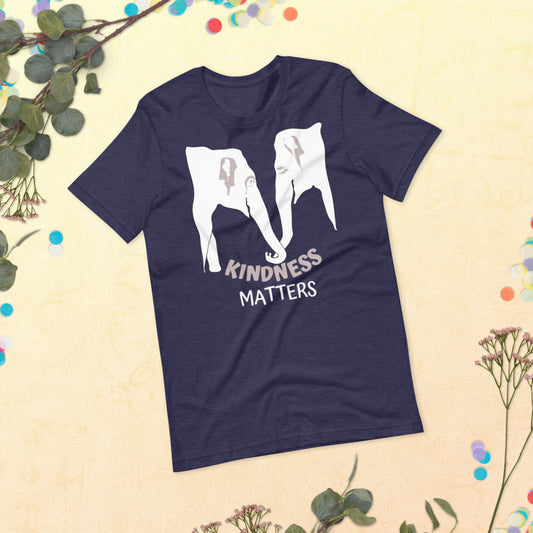 Kindness Matters Elephant Short-Sleeve Unisex T-Shirt (White Design)