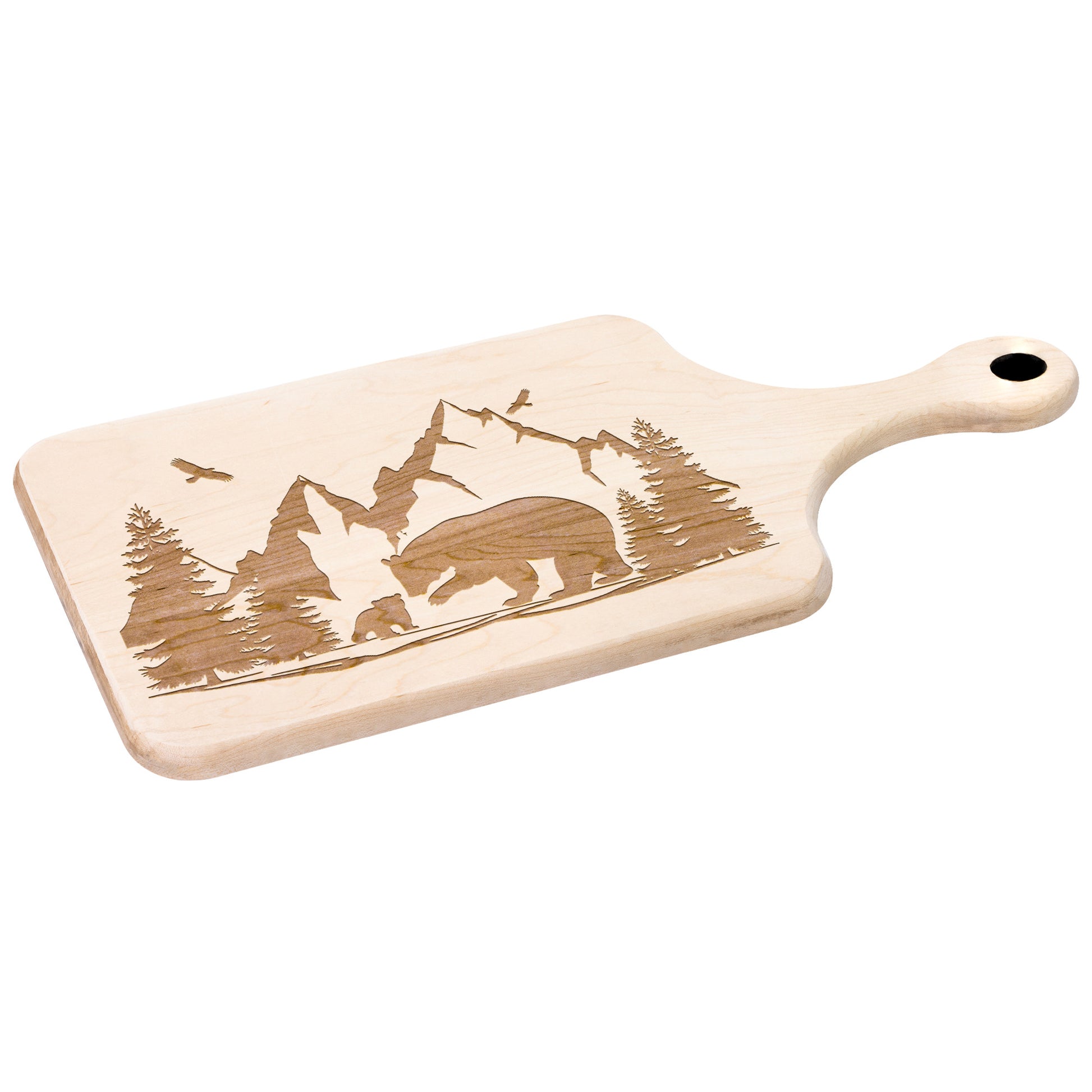 Step into the heart of the wilderness without ever leaving your kitchen with our remarkable Hardwood Paddle Cutting Board. Crafted from two stunning varieties, Maple and Walnut, these boards are more than just kitchen tools; they're a portal to nature's embrace.