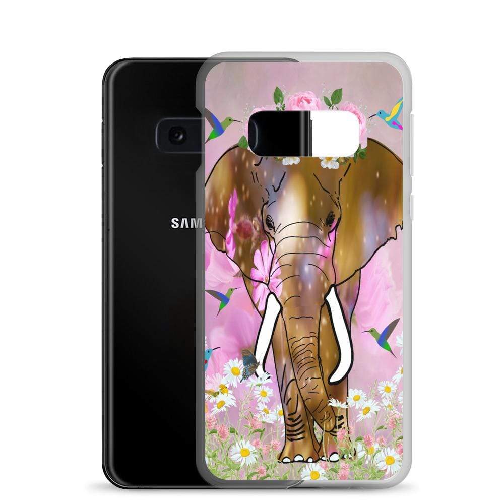 Samsung Phone Case with Illustrated Elephant and Flowers - Field of Dreams Elephant with Crown