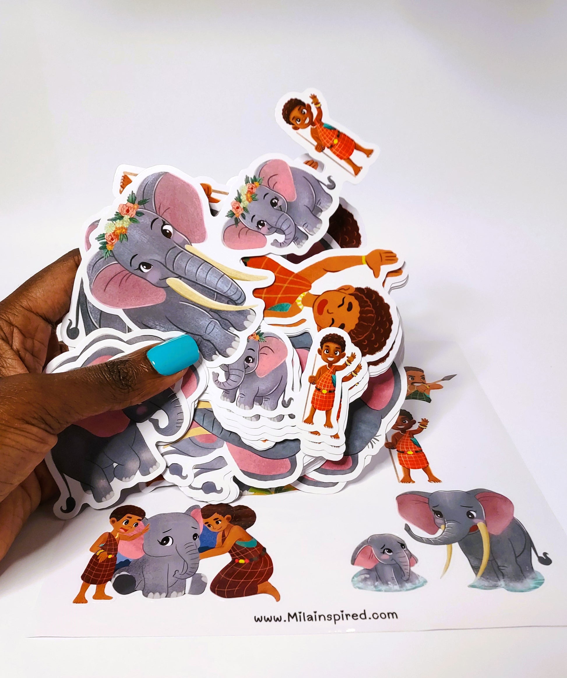 Stickers of Yaro the Maasai Village Boy and his Mother Waving Goodbye | Die-Cut Maasai Family Stickers | Outdoor and Indoor Stickers | Water-resistant Stickers