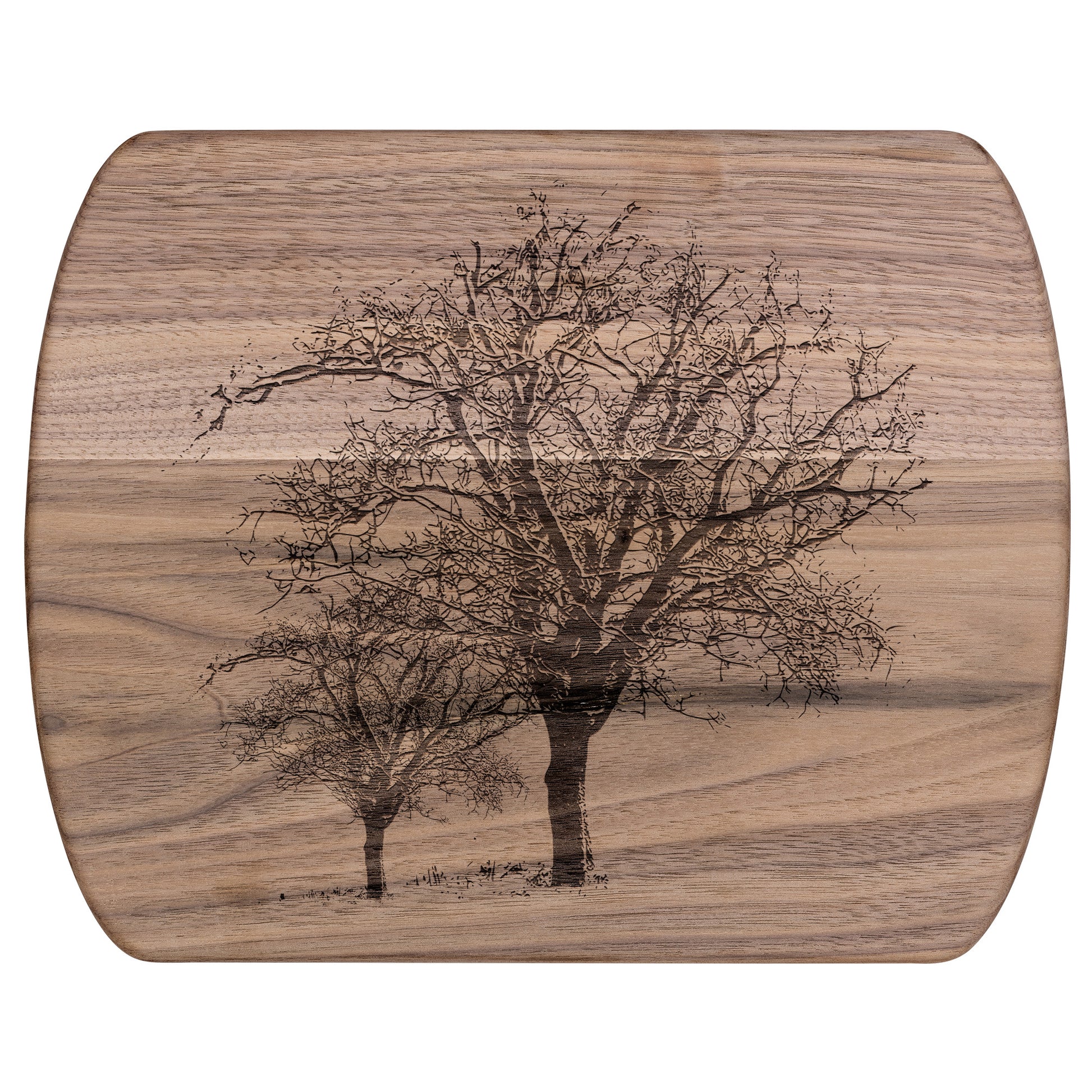 Walnut Cutting Board, Maple Cutting Board, Oval Cutting Board with Farmhouse Trees, Great Housewarming Gift